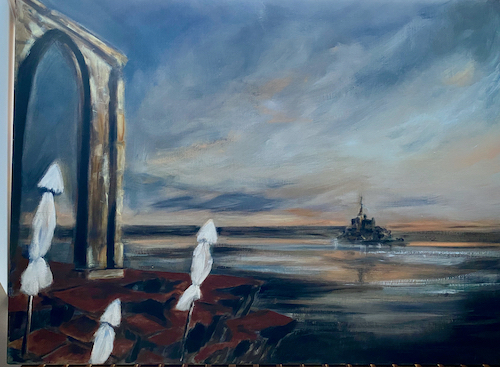 Les parapluis du Mont St. Michel . Öl auf Leiwand . 60x80cm . 2020