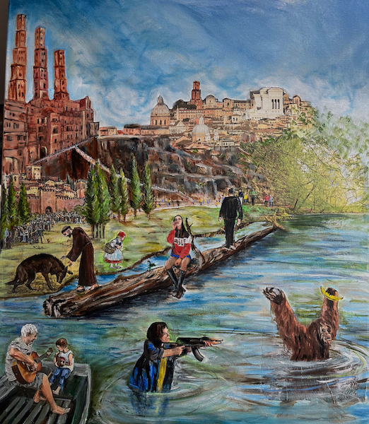 Die geklaute Banane . Collage/Öl auf Leinwand . 70x60cm . 2023