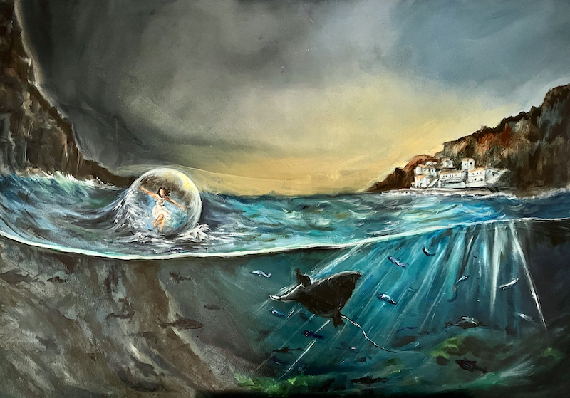 the girl in the bubble . Öl auf Leinwand . 100x80cm . 2023