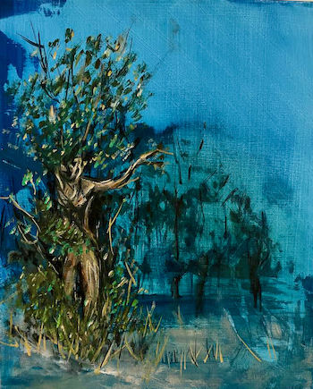 Die Baumfrau . Öl auf Leinwand . 37x45cm