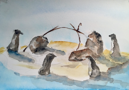 Konferenz am Strand . Aquarell auf Papier . 17x24cm . 2017