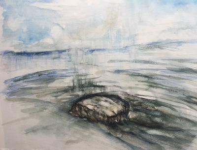 Stein im Wasser . aquarell auf papier . 17x24cm . 2019