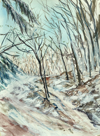 Winterspaziergang 2 . Aquarell auf Papier . 23x31cm . 2021