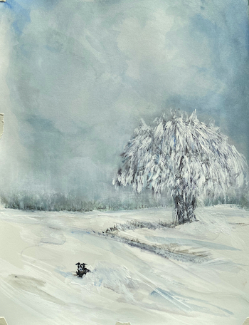 Hund im Schnee . Aquarell auf Papier . 18x26cm . 2021
