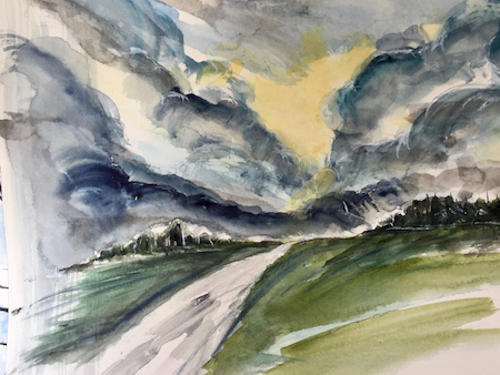 Gewitter auf Kreta . Aquarell auf Papier . 23x31 cm . 2020