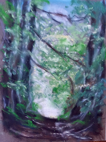 Waldspariergang 3 . Pastell auf Papier . 17x24 cm . 2014